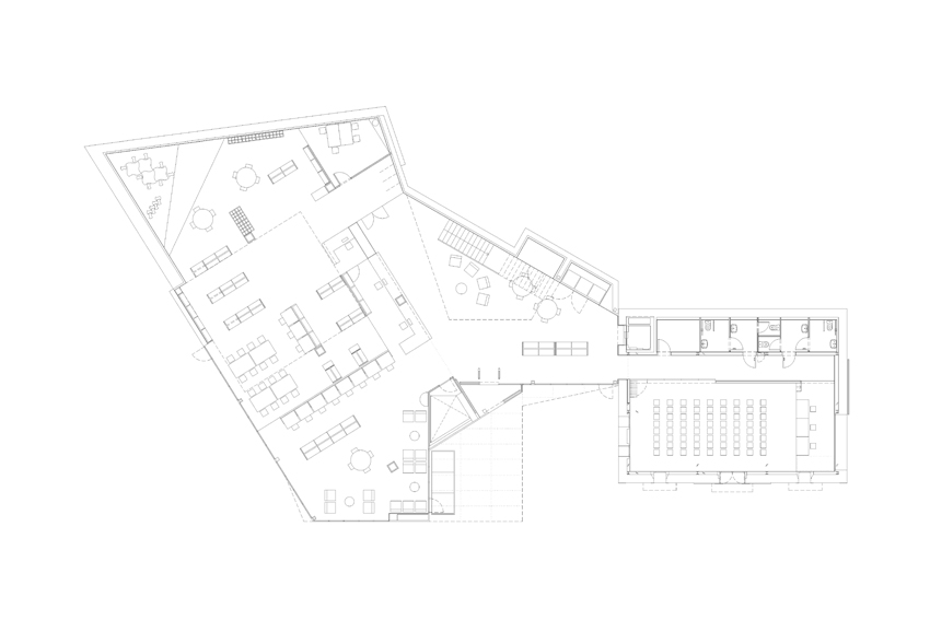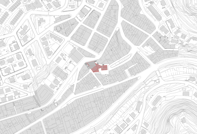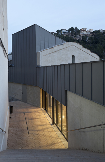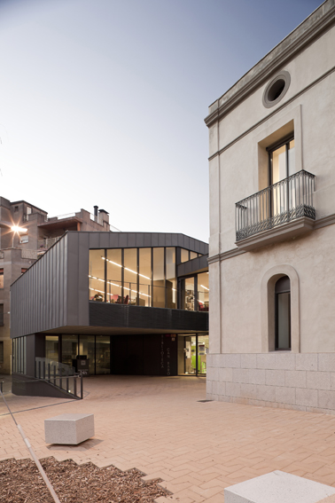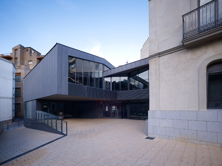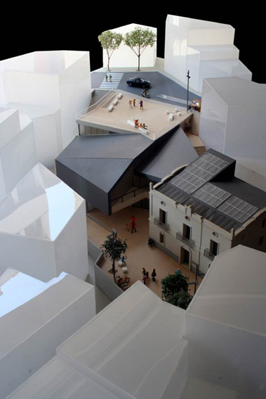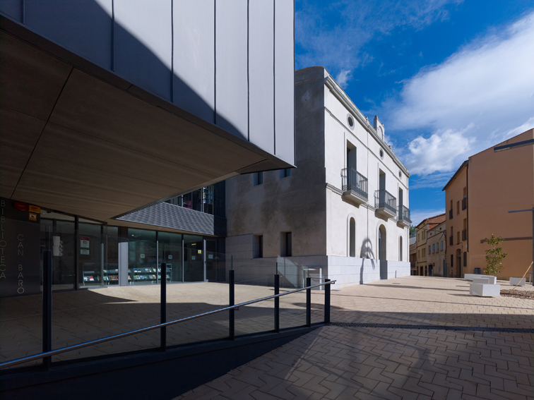 El solar se situa al costat de la masia de Can Baró, de geometria complexa i irregular presenta un considerable desnivell entre el carrer Sant Antoni i la cota d'accés de Can Baró. El lloc del projecte conserva l'encant d'aquelles zones on la diversitat i la manca d'unitat fa necessària una resposta contundent, lògica i meditada que li retorni a la masia de Can Baró la identitat que li pertoca. Una part de la coberta del nou edifici annex a Can Baró es constitueix en plaça pública a nivell del carrer Sant Antoni, per a realitzar-hi espectacles públics i diversos usos de lleure. La profunditat del nou edifici i els murs de contenció a conseqüència de la topografia del lloc dóna peu que la coberta porti la llum a l'interior mitjançant el seu traçat esglaonat o sinuós, de manera que l'interior rep diferents qualitats de llum del sostre, dels dobles espais i de les façanes. Aquest gest de la coberta no respon només a requeriments lumínics, el pla de la coberta puja en pendent per guanyar alçada als espais interiors i des del la plaça es converteix en mirador amb la ciutat com a teló de fons. I descendeix al aproximar-se a les edificacions veïnes per tal de suavitzar la trobada amb les mateixes. En la masia part de la coberta es transforma en lluernari per il•luminar correctament els espais més alts. La volumetria de l'edifici respon a la mateixa topografia del lloc que descendeix i es modela per acabar transformant-se en edifici.